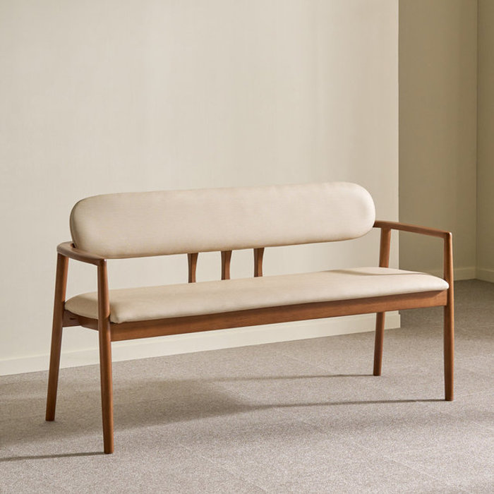 [리비니아] 캔버 고무나무 원목 2인 벤치/식탁의자/벤치의자, 월넛