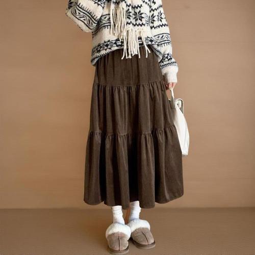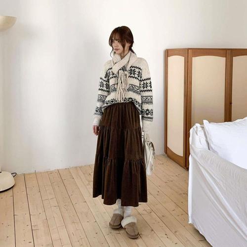 [당일출고/겨울템!]쏘옷 겉기모 벨벳 코듀로이 골덴 A라인 캉캉 롱 스커트_S K401(가인)