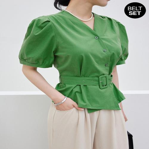 뉴욕멋쟁이 시아 세미크롭 벨트 블라우스
