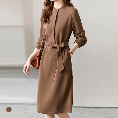 [옷자락]여성용 클래식 긴팔 벨트 미니 원피스