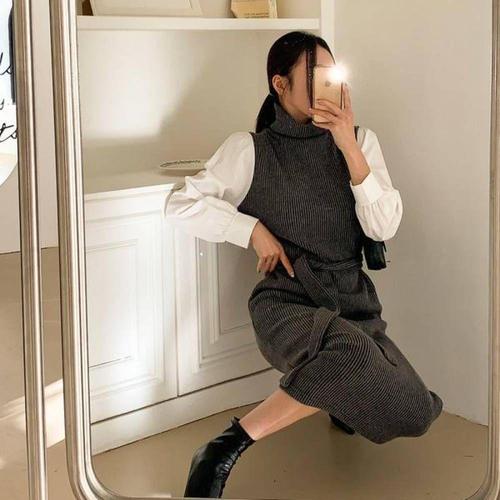 쉬폰 원피스 셔츠 여름 니트 벨트 폴라넥 롱니 WFKPDNE