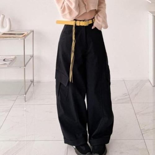 [다잇템]여성 건빵 키치 혁대 바지 주머니 스타일 롤업