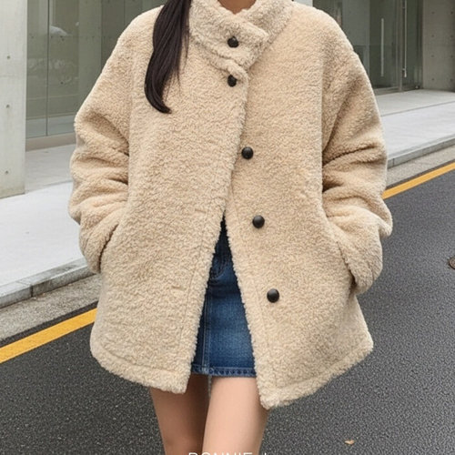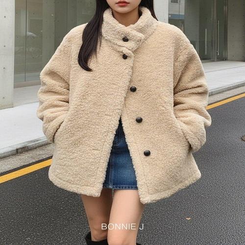 [보니제이]뽀글 퍼 하프 코트 루즈핏 오버핏 2color 부클 하프