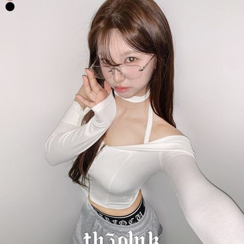 더핑크 / 컬림 슬림핏 초커 스트랩 집업 오프숄더 긴팔티