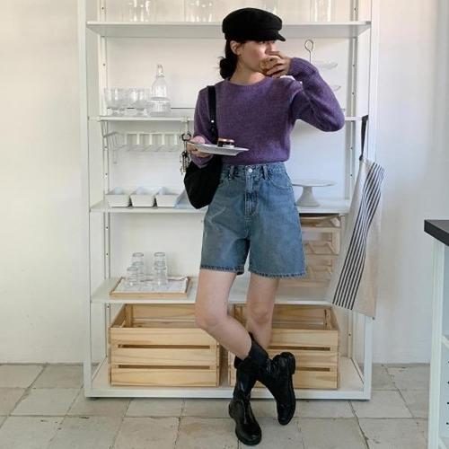 [엄지척]보라색 니트 긴팔티 가을 데일리 슬림한 니트티 긴팔_19610335_667501