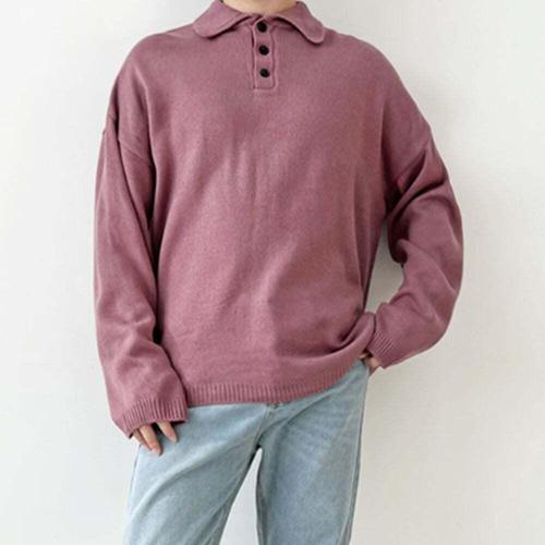 [모로엠]보라색 카라 단추 니트 남성용 ON-KN-QWFFJ6VX