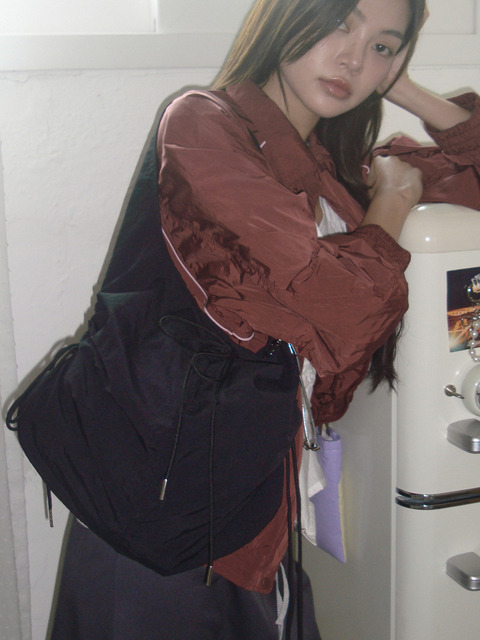 [보르] 나일론 셔링 디테일 숄더백_블랙