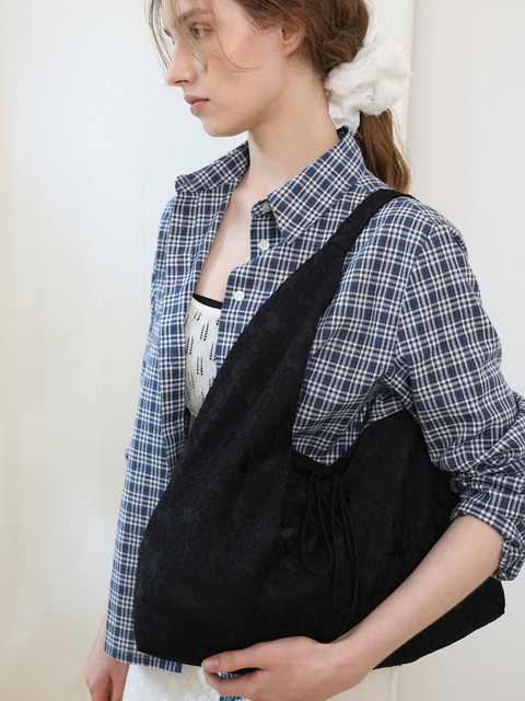 [보르] 빈티지 체크 매듭 숄더&크로스백_블랙&화이트