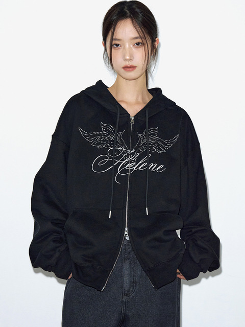 [2-WAY] 젬데님 패치 피그먼트 후드 집업 스모크블랙