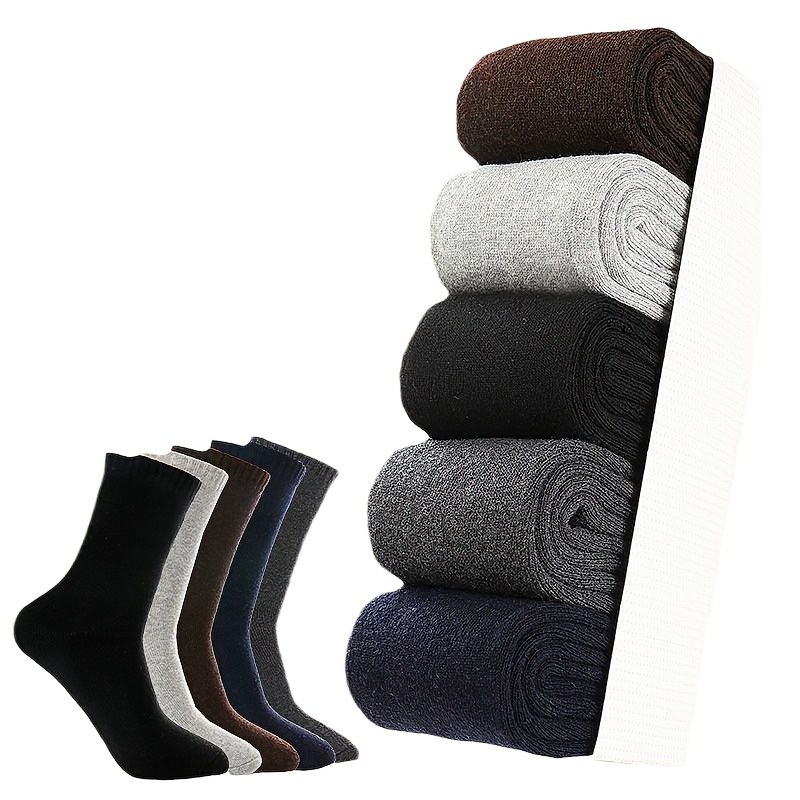TEMU 남녀공용 겨울용 울 따뜻한 두꺼운 양말 5켤레 세트 - 30°C에서 보온, 사계절 사용 가능, 단색 캐주얼 아웃도어 양말, 손세탁 전용, 추운 날씨용 기어