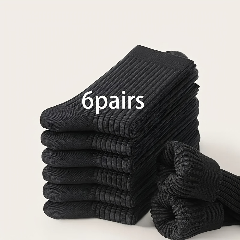 TEMU 6켤레 남성용 블랙 롱 양말 - 통기성, 수분 흡수 니트 원단, 일상 비즈니스 착용용 단색 디자인, 편안하고 다용도, 고품질, 손세탁 전용, 비즈니스 캐주얼 양말|클래식 양말 디자인