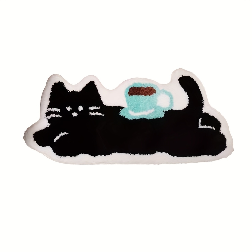 TEMU 1개 귀여운 검은 커피 키튼 플러시 매트 - 커피잔 디자인의 부드러운 세탁 가능한 매트, 소프트 폴리에스터 & 고무 혼방, 거실, 침실, 공부용 불규칙한 모양 - 크리스마스, 할로윈, 추수감사절, 졸업식, 준틴스데이, 커피 바 액세서리, 고양이 차 액세서리, 고양이 차 매트, 침실 러그/카펫 대형, 카펫 거실