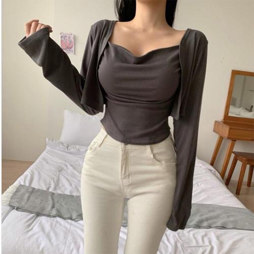 [옷자락]여자 드레이프 슬림핏 끈 나시 볼레로 가디건 세트