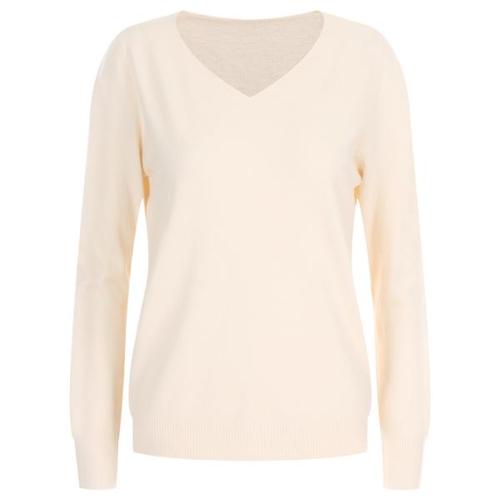 [샵앤][샵앤] 봄신상 여성 V넥 부드러운 무지 긴팔 니트 티셔츠 WNW-WKN-20330-크림