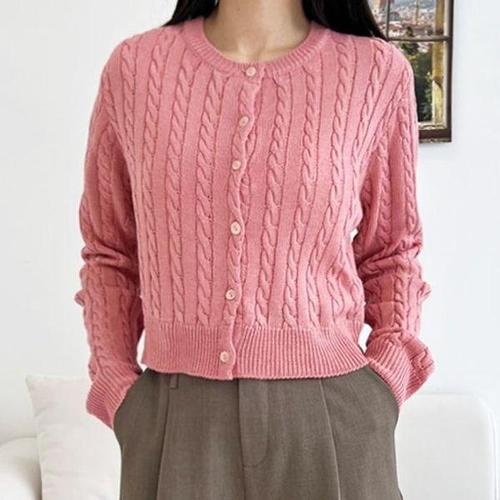 [셀러허브_여성트랜드패션]ONM 꽈배기 여성 가디건 봄 가을 크롭 여자 가디건