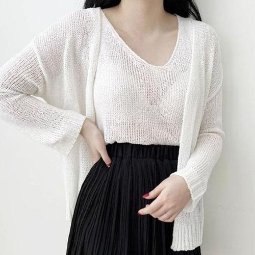 여자 봄 여름 루즈핏 시스루 그물 가디건 니트 3컬러