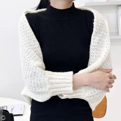 여자 봄 데이트 룩 간절기 골지 슬림 핏 반폴라 니트