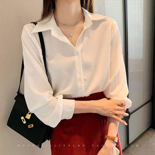 [에이치플러스몰]셔츠 가을 여자 블라우스 스타일 모던 쉬폰 캐주얼 봄