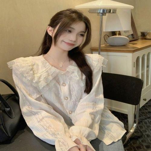 [에이치플러스몰]봄 가을 셔츠 블라우스 레이스 여자 프릴 귀여운