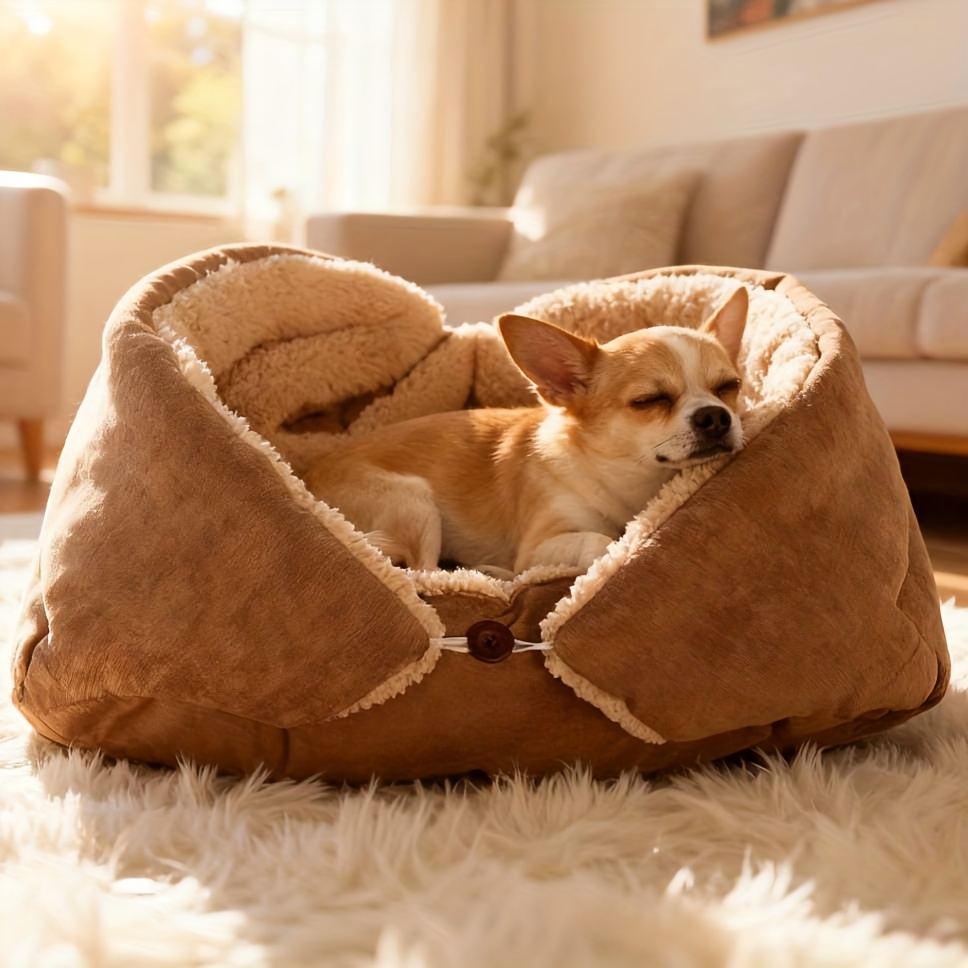 TEMU 2 in 1 겨울용 두꺼운 보온 애완 동물 침대 | 애완 동물 매트로 변환 가능, 부드러운 플러시 안감, 간편한 세척, 대형 고양이/소형 강아지에게 적합, 빈티지 인조 모피, 크리스마스/할로윈 선물로 이상적 | 인기: 겨울 고양이 쿠션, 실내 고양이 둥지