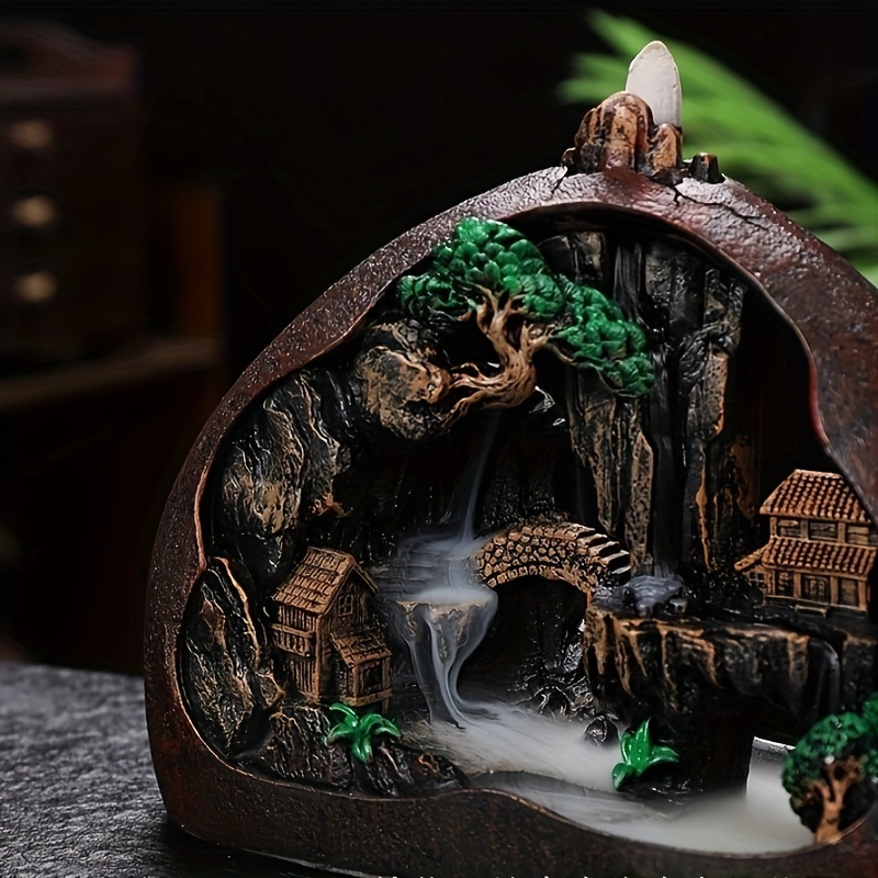 TEMU 산과 폭포 디자인의 [평온한 장식] 수지 향로, 무향 아로마테라피 홀더, 크리스마스, 할로윈, 이스터, 하누카, 추수감사절에 이상적 - 반산 비가 내리는 딩샹로, 향로