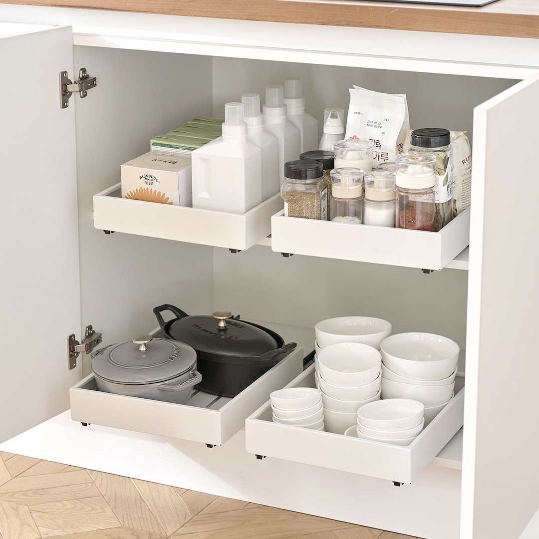 TEMU 1단 이중 레이어 서랍형 수납 선반, 싱크대용 보관함, 두꺼운 소재, 설치 불필요, 주방·욕실·거실 등 다양한 공간에 적합한 홈 데코 및 주방 정리 도구|싱크대