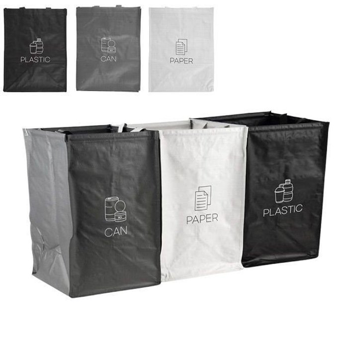 가정용 대용량 재활용 분리수거함 3종(3단) 세트 54리터 / 방수 타포린 분리수거함