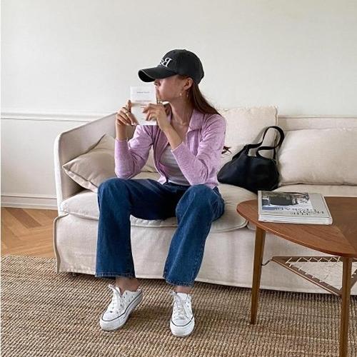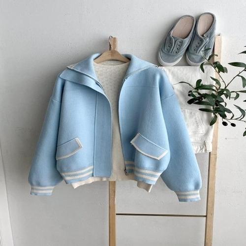 [신상오픈런]|CDJ4DAE|루나일 윈터 여성 미니멀 분홍색 집업 가디건 블루 카라_18160728_597559
