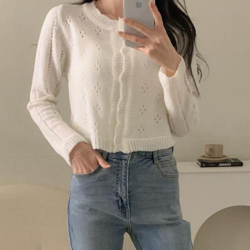 제니트 여성 보송 폭닥 라운드넥 긴팔 니트 가디건 베이직