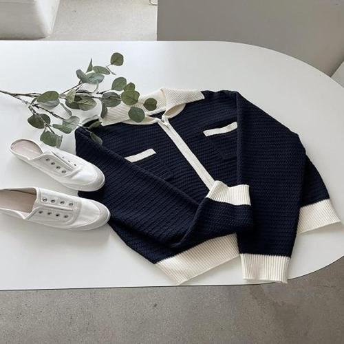 여성 니트 긴팔 슬림핏 캐주얼 골지 가디건 티셔츠 KN-14 프레피