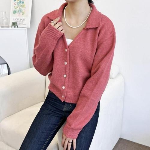 [다잇템][다잇템] 여자 분홍색 FW 브이 스웨터 롱슬리브 카라넥 가디건_14797244_588872