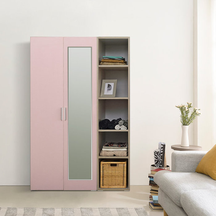장인가구 [비밀특가] 장인가구 큐비 1200 옷장세트 (800 행거형 전신거울+400 오픈수납장)