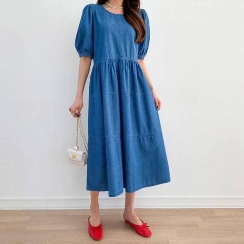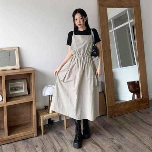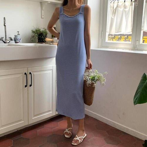 데님 롱 플리츠 뷔스티에 셔츠 끈나시 여름 휴 WFKPDQ9
