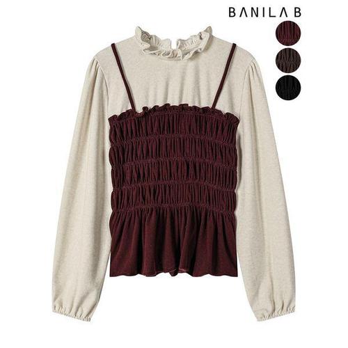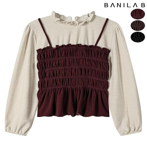 [에이비에프지]셔링 디테일 뷔스티에 레이어드 긴팔 블라우스 APY4HB391J