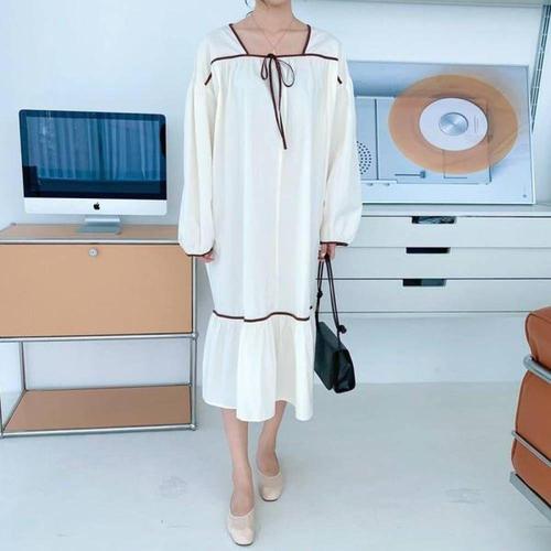유니크 뷔스티에 온나핏 여름 쉬폰 배색 롱원피 WFKPDML