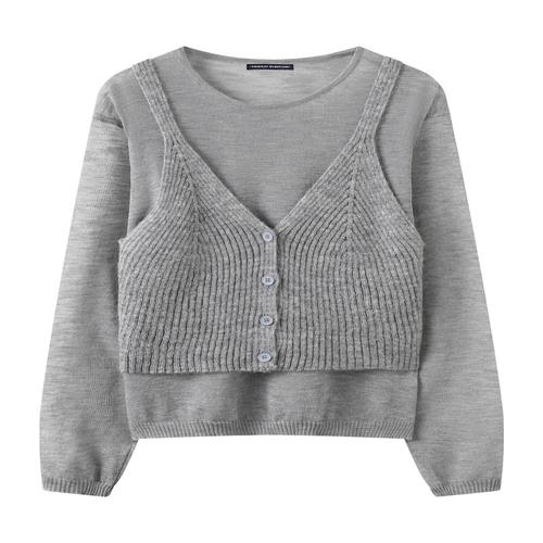 [미니멈에브리데이][미니멈 에브리데이]심플 라운드 니트 골지 뷔스티에 세트 (EC1KT002D)