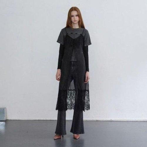 [미라클세븐]쉬폰 뷔스티에원피스 살랑 레이스 레이어드룩