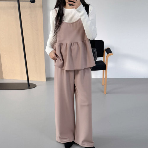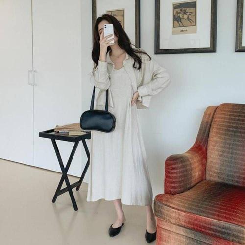 뷔스티에 여름 라운드넥 골지 롱니트 원피스세트 WFKPDNH