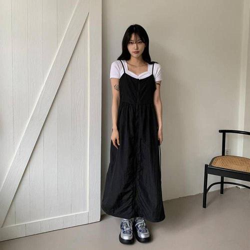 여성 롱니트 셔츠 뷔스티에 여름 데님 롱 원피 WFKPDPY