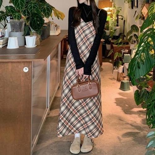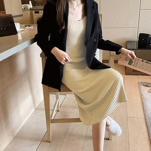 뮤앤뮤즈 겨울 데일리 레이어드 뷔스티에 끈 나시 롱 원피스