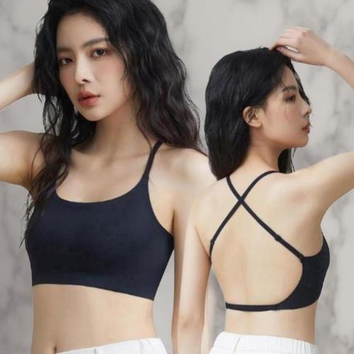 [옷자락]여성 스포츠 필라테스 크로스 끈 나시 심리스 브라탑