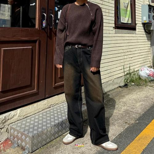 [링크샵]빈티지 블랙브라운 워싱 와이드 청바지