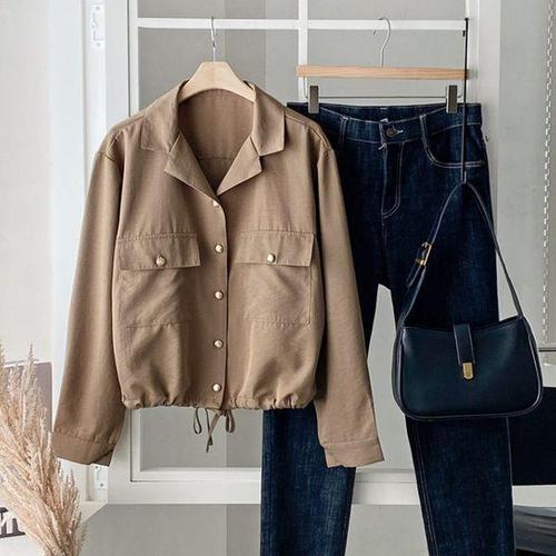 [신상오픈런]여성용 블랙 브라운 포켓 스트링 남방 셔츠