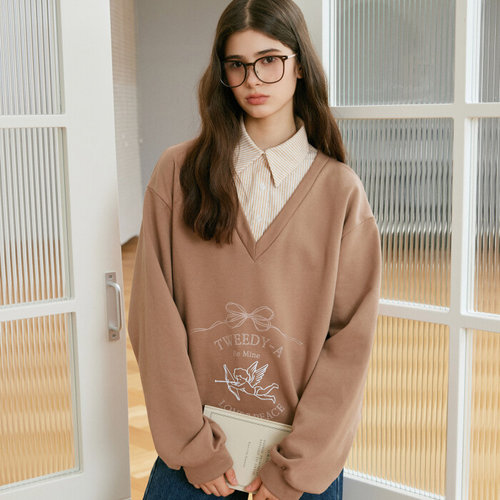 트위디아 / 스트릿 레이어 로고 장식 셔츠 맨투맨 브라운