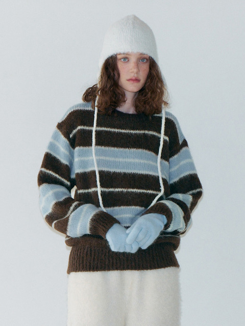 [에트몽] 브러쉬 스트라이프 니트 풀오버 브라운