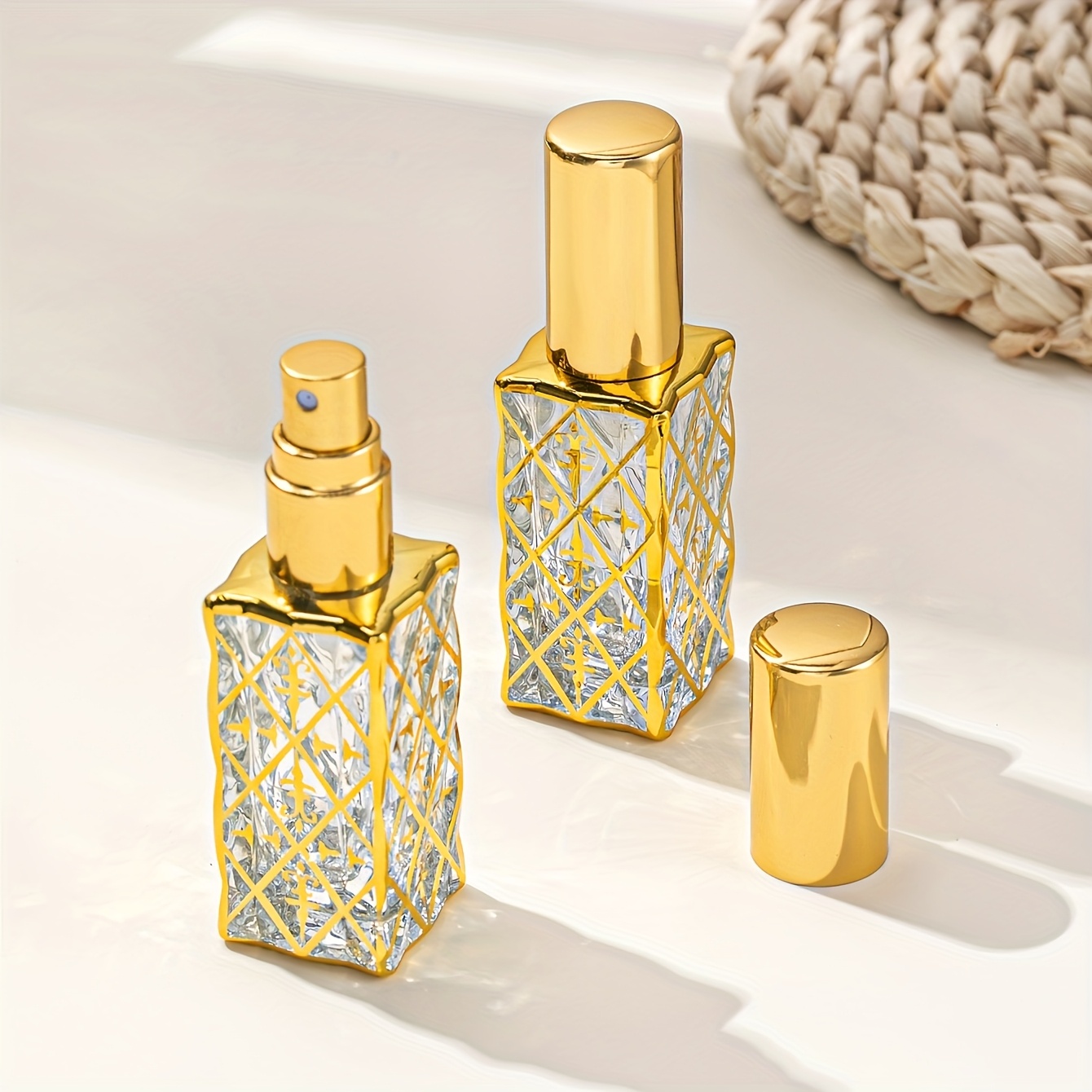 TEMU 2개 골든 향수 스프레이 병 - 아랍 중동 스타일, 12ml/0.41oz 유리 리필 가능 여행용 분무기, 미세한 안개, PVC 무함유, 여성 남성 선물 (생일 크리스마스 발렌타인데이)