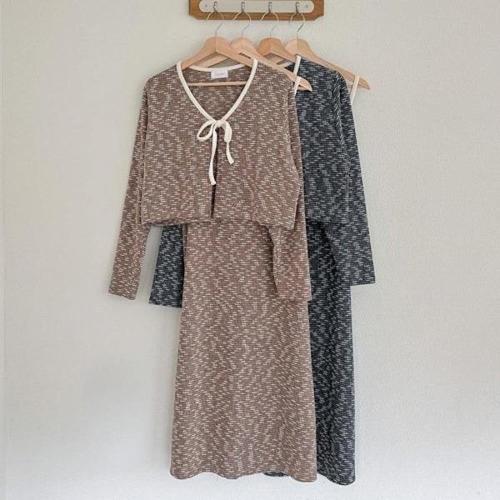 [신상오픈런]|KSD2176|여자 롱 원피스 리본 브이넥 가디건 세트_19004283_597559