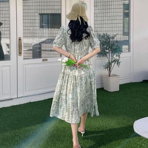 VIISHOW 여성용 봄여름 퍼프소매 플라워 브이넥 롱 원피스
