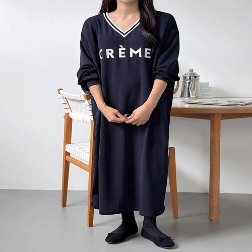 [퍼니걸스]배색 브이넥 레터링 프린트 긴팔 롱 원피스 9008 여성의류