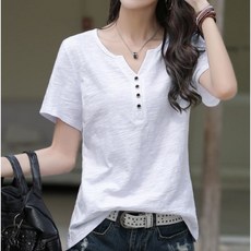 여름 여성복 반팔 루즈핏 캐주얼 브이넥 티셔츠